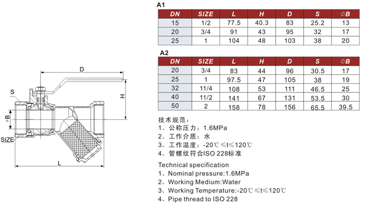 产品名称:丝口铜球阀过滤器